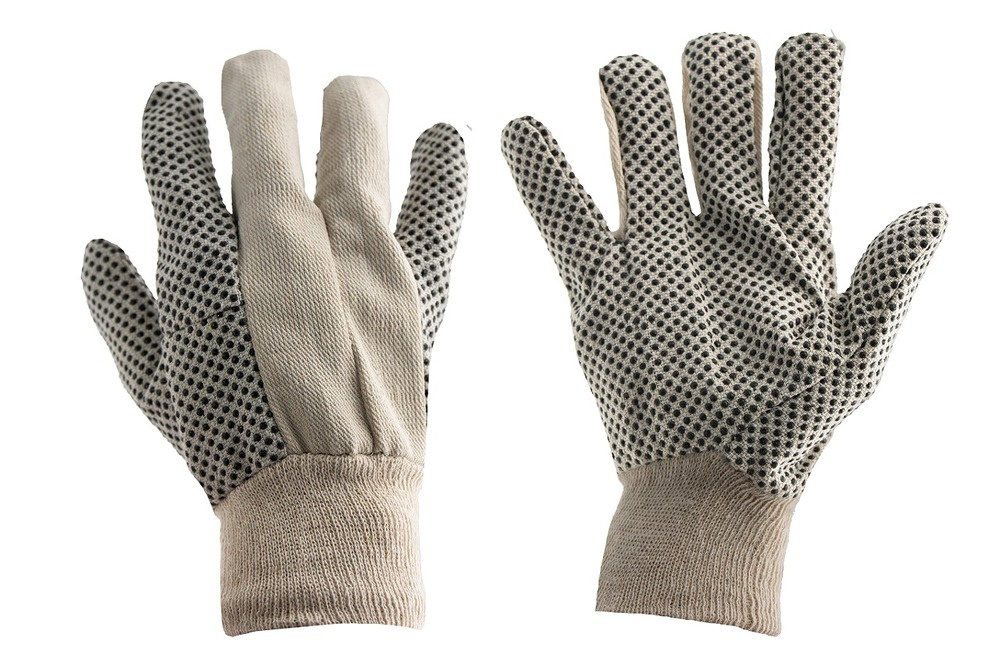 RĘKAWICZKI BAWEŁNIANE POWLEKANE KROPKI PCV BEŻOWE ROZMIAR 10 - XL