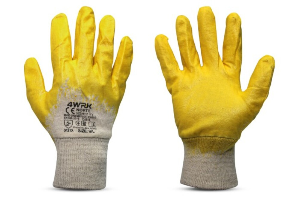 RĘKAWICE BAWEŁNIANE Z ŻÓŁTYM POWLECZENIEM NITRYLOWYM