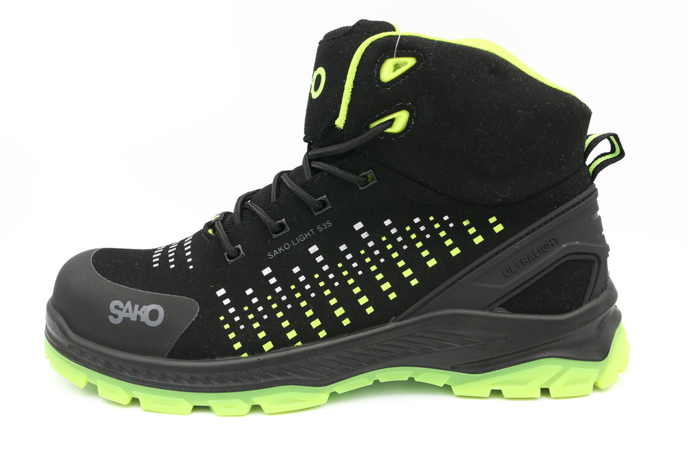 Trzewiki ochronne SAKO 05-005 S3 ESD to doskonałe połączenie nowoczesnych materiałów i zaawansowanych technologii, zapewniające najwyższy poziom ochrony i komfortu w wymagających środowiskach pracy. Wykonane z czarnej wodoodpornej mikrofibry, gwarantują trwałość oraz odporność na wilgoć, a wzmocnienie pięty z TPU zwiększa stabilność i przedłuża żywotność obuwia.